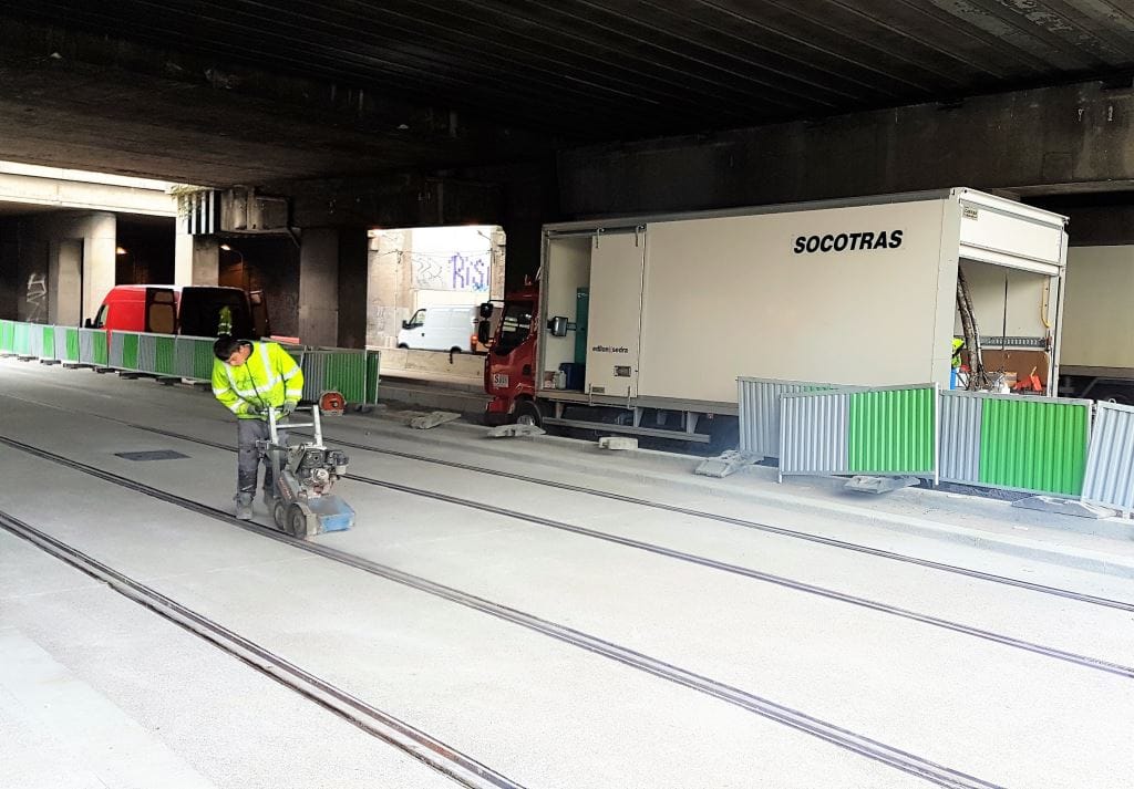 - Installation of flexible or semi-flexible joints sealant on paved tracks or tram-rails.