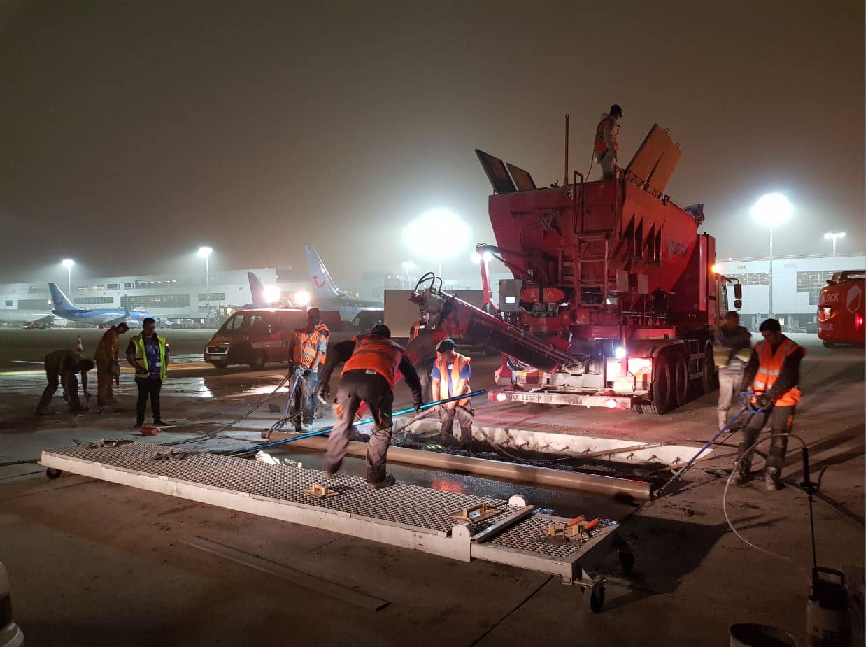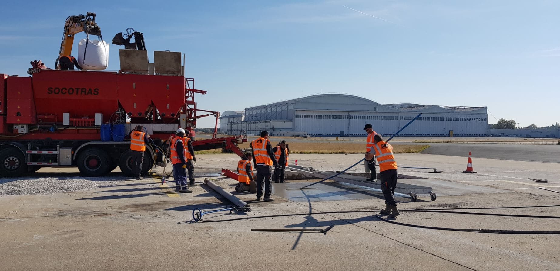 - Reconstruction of slabs in rapid-hardening concrete for aircraft recirculation to within a few hours.