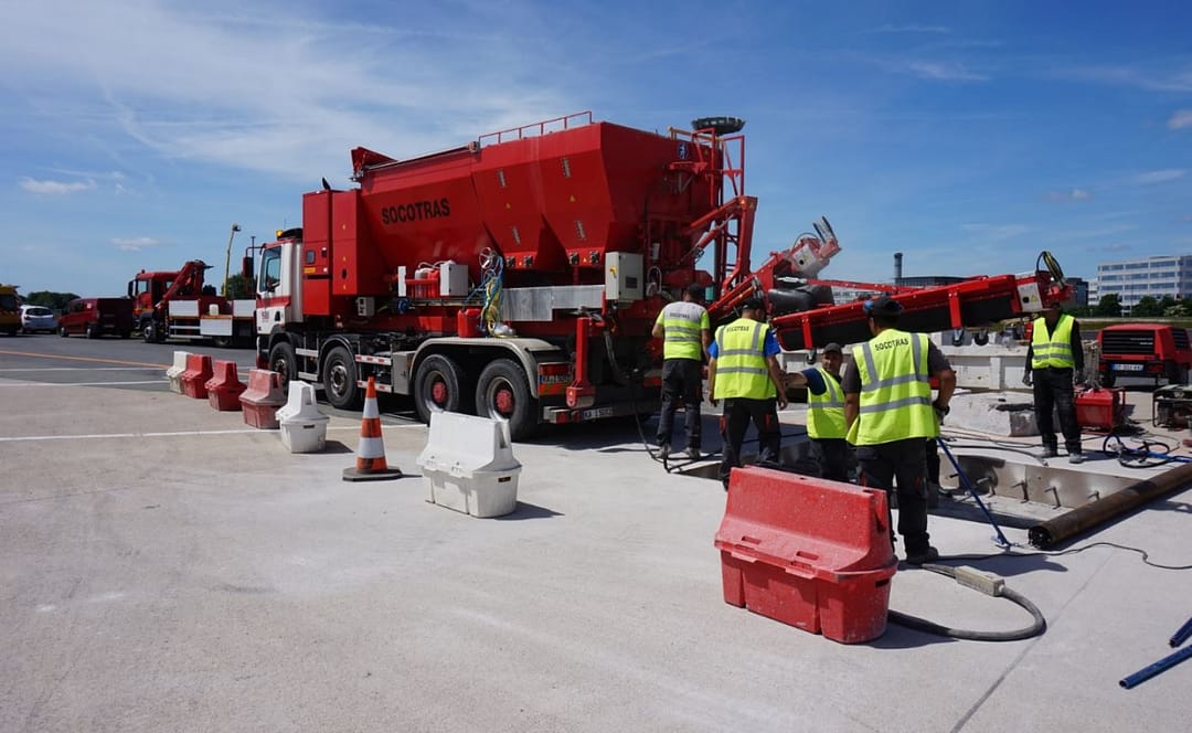 This solution offers the advantages to correct durably the disorders encountered on aeronautical pavements with materials of the same nature as those surrounding them. It also able to reopen aircraft traffic and operation as soon as possible.